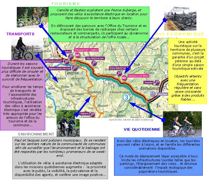 Proposer une offre touristique basée sur un mode de déplacement tel que le VAE s’inscrit parfaitement dans une logique de développement durable, cela sous-entend en revanche de nombreuses exigences auxquelles il faut penser pour garantir la pérennité et la qualité de son offre. Afin d'engager une démarche exemplaire, ExtraEnergy met à disposition de ses porteurs de projet un outil pédagogique d'aide à la mise en oeuvre.